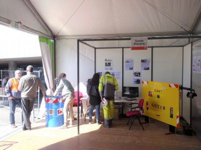 Pour l'occasion, GETIM tenait un stand avec les sociétés PHOENIX et SODI SIDE afin de sensibiliser les conducteurs de voitures/camions aux dangers qu'il y a à évoluer autour des véhicules lourds et les bons comportements à adopter en leur présence. « Il faut toujours rester à distance des engins et attendre qu'ils aient terminé leurs manœuvres. Le mot d'ordre c'est soyez patients », explique M. Marc CLUTIER, responsable SSEQ et Développement, et représentant de GETIM sur l'événement.